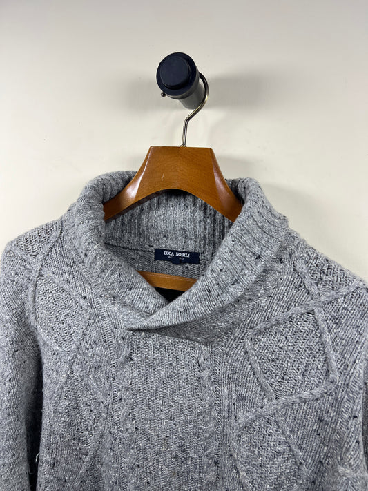 Luca Nobili Cable Knitted Quarter Buttoned Sweater (X-Large)